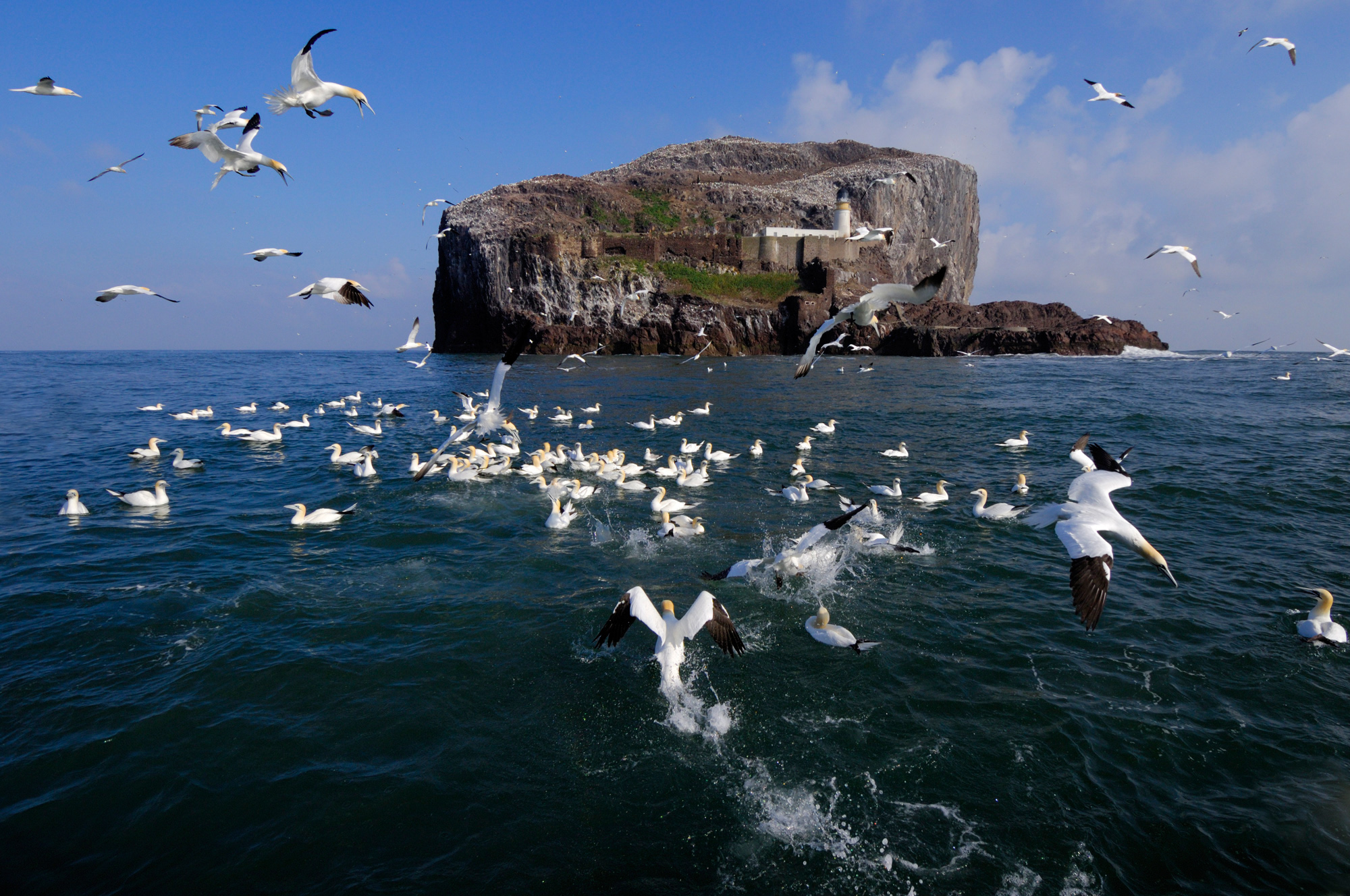 Photos: Bass Rock © Laurie Campbell; Gannet with black eye, Bass Rock, April 2023 © Maggie Sheddan