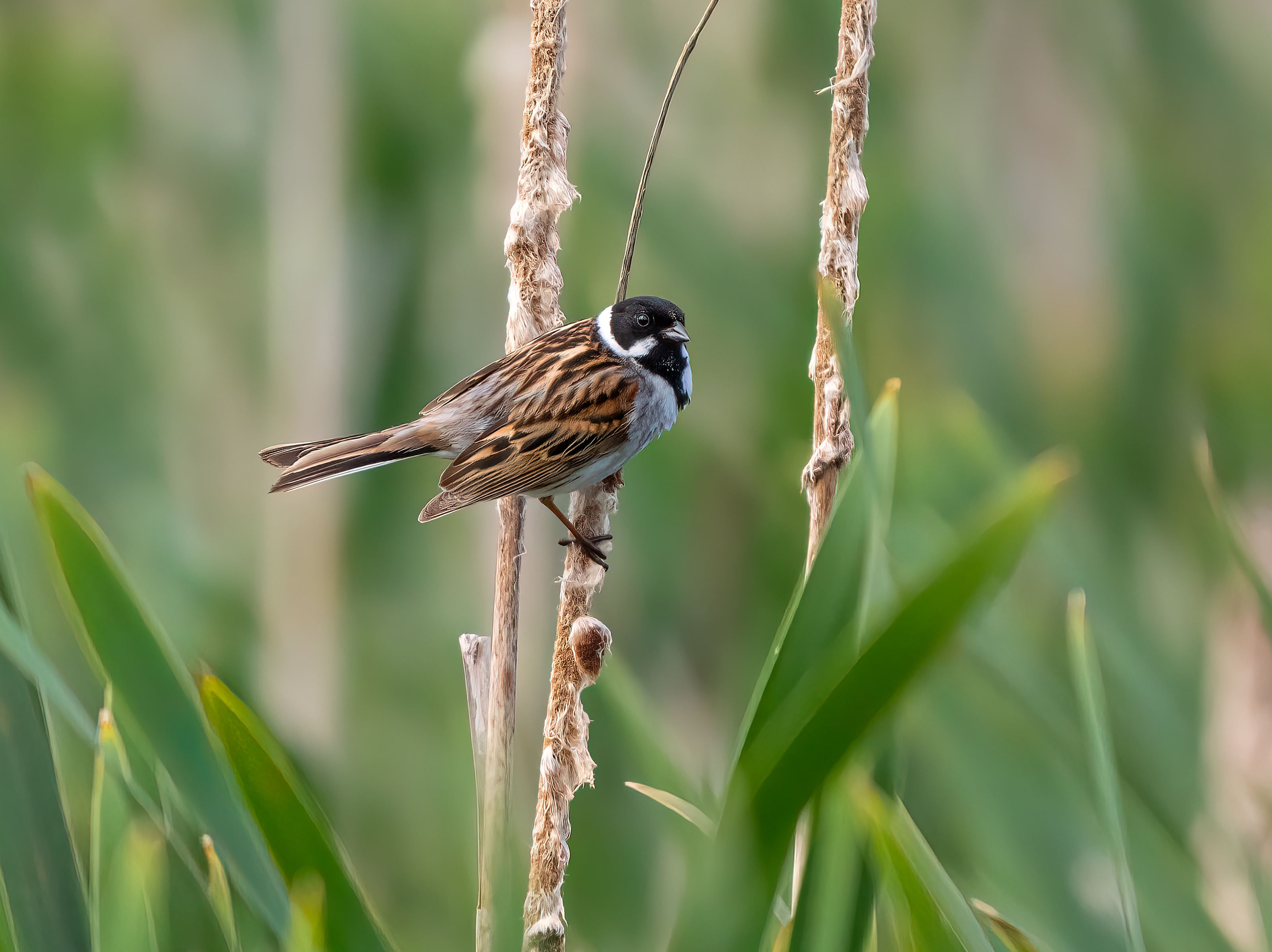 Male Reed Bunting among the Bullrushes