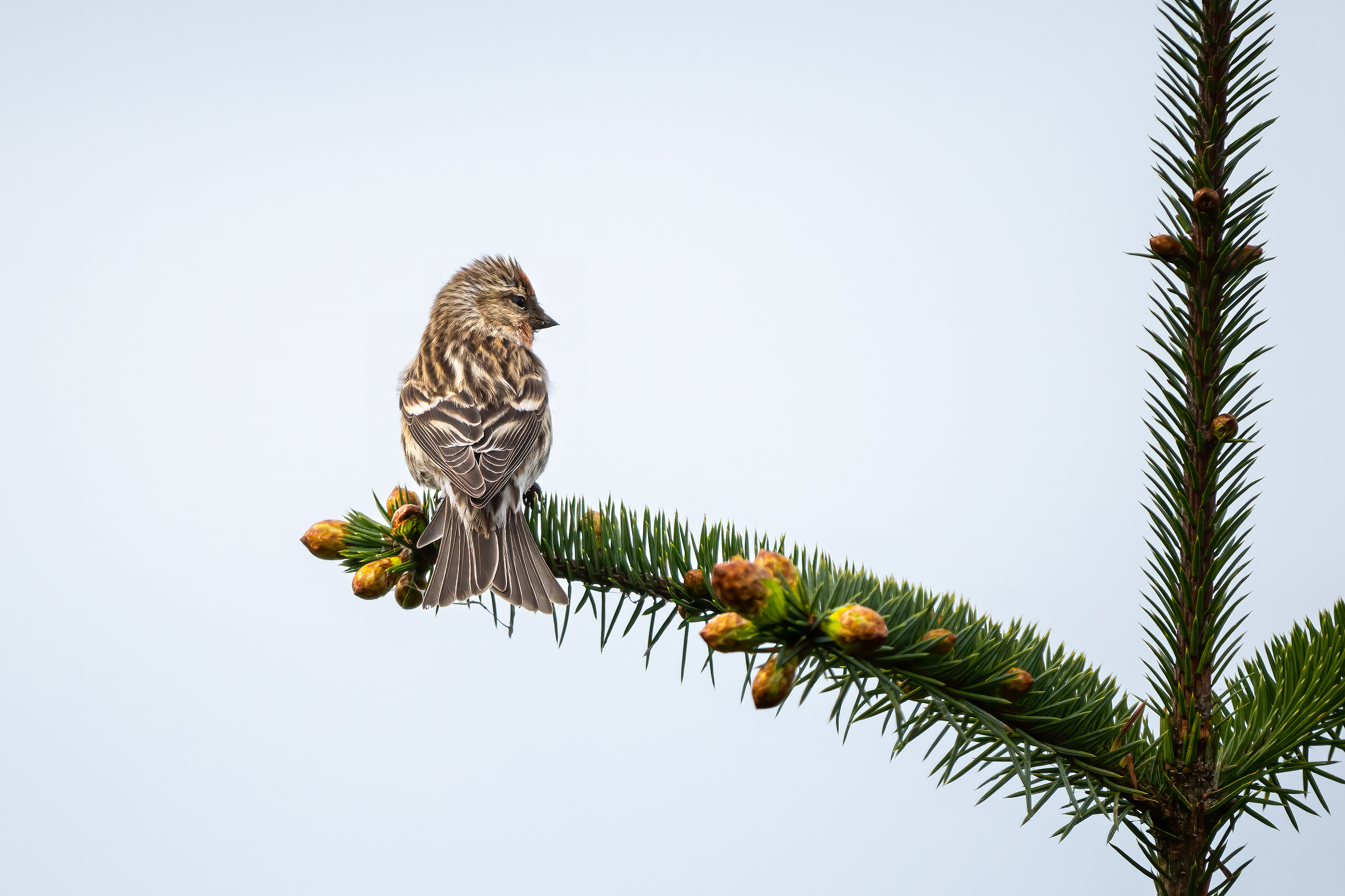 Redpoll in Spruce tree