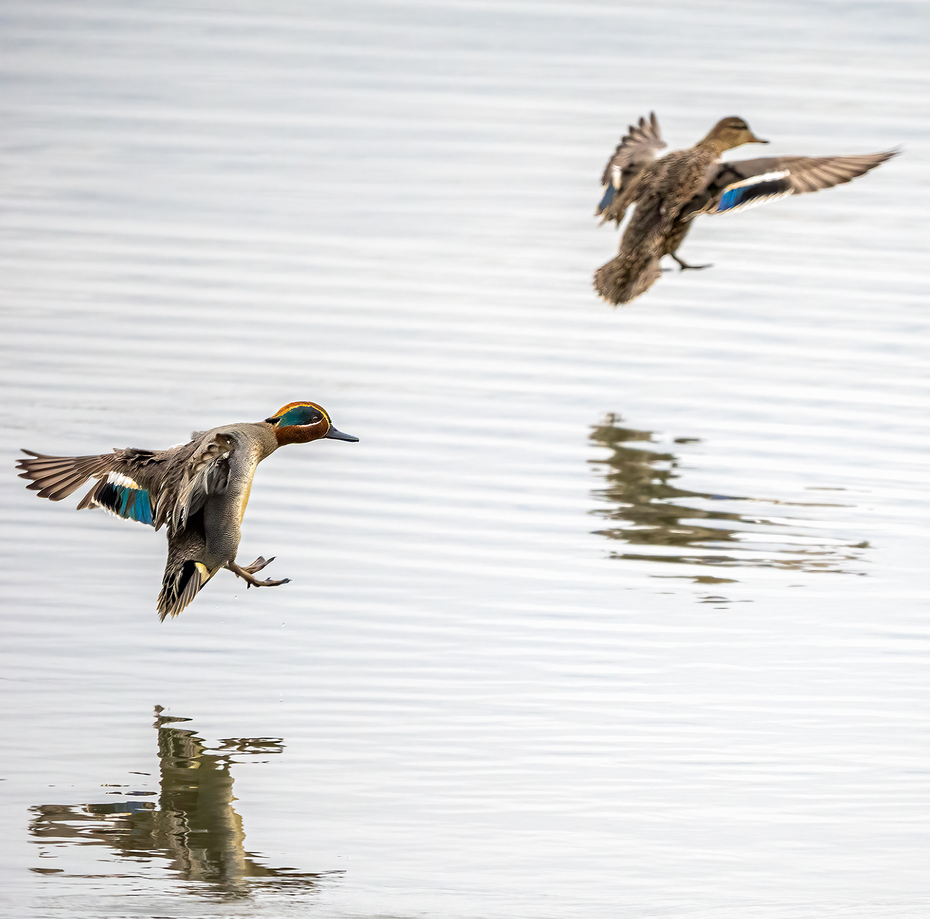 Teal pair in flight