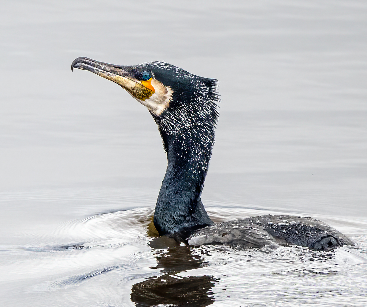 An adult cormorant was fishing on the Haugh and I was immediately drawn to it by its most strikingly vibrant and “different" courtship plumage and its electric blue eye.