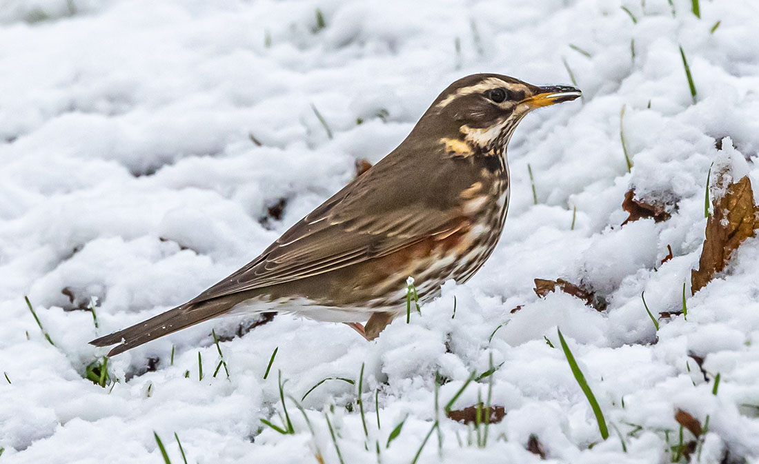 redwing foraging in shallow snow
