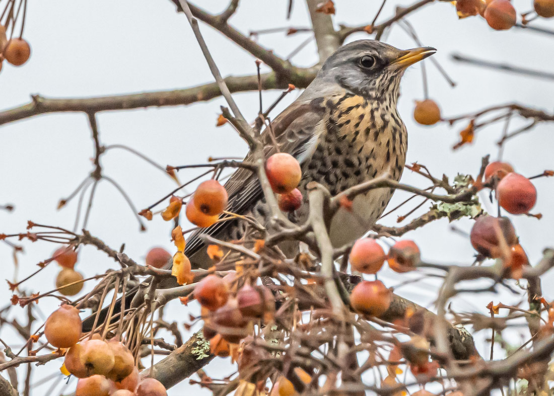 fieldfare amid berries