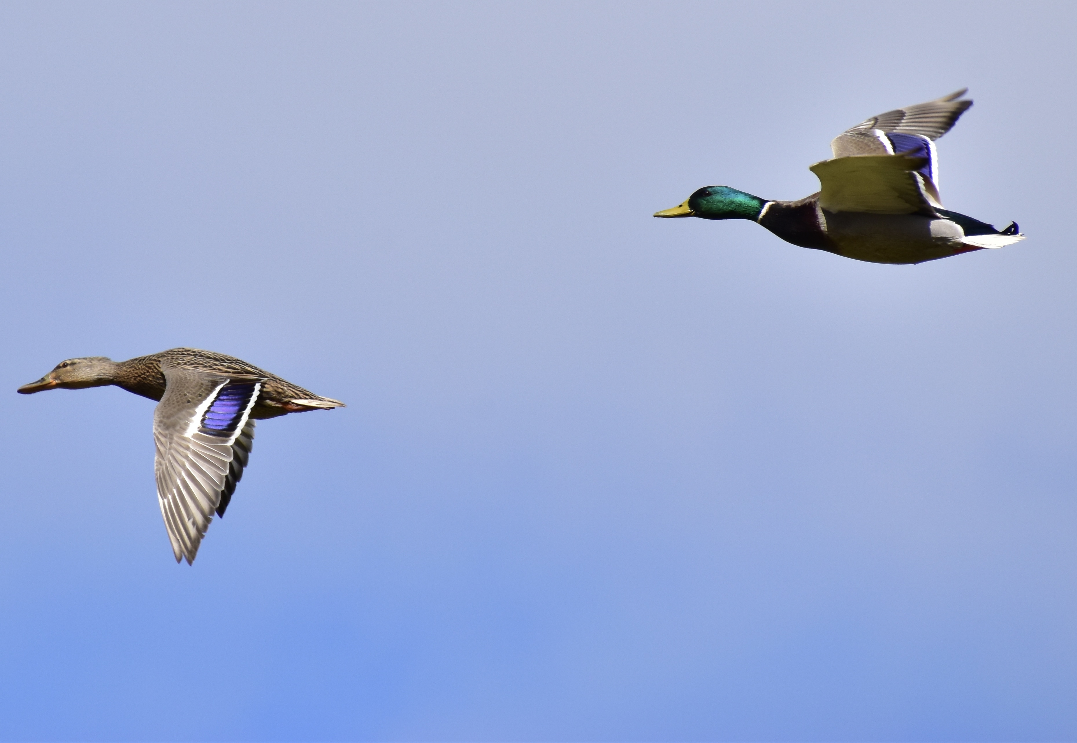 upon hearing the call "Duck!" I was half expecting the follow up of " its just a seagull!" luckily I turned around just in time to quickly point the camera towards these two splendid mallard's as they flew pass at close quarters and perfectly capture the moment as if by chance!