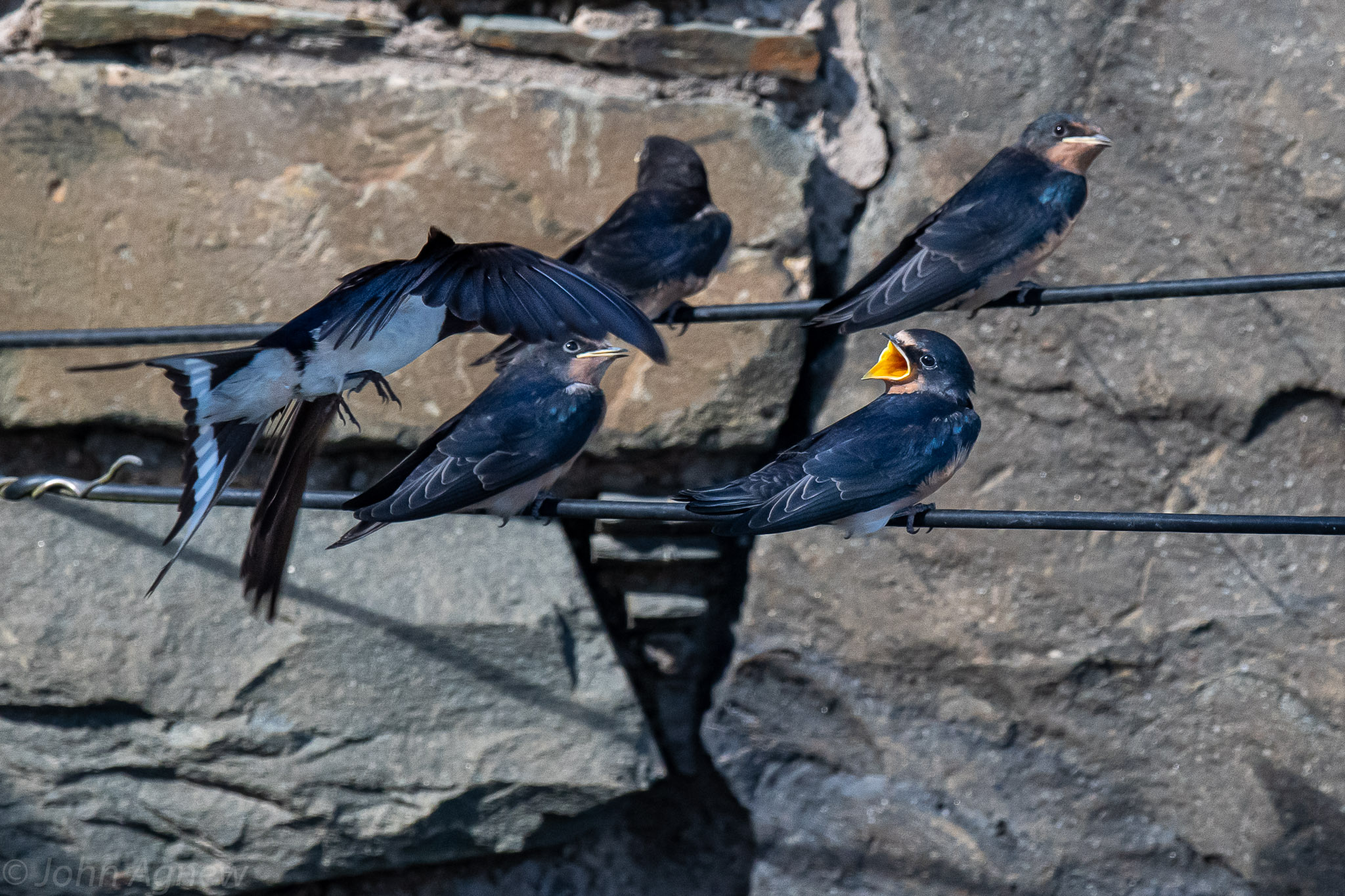 Swallow feeding fledglings