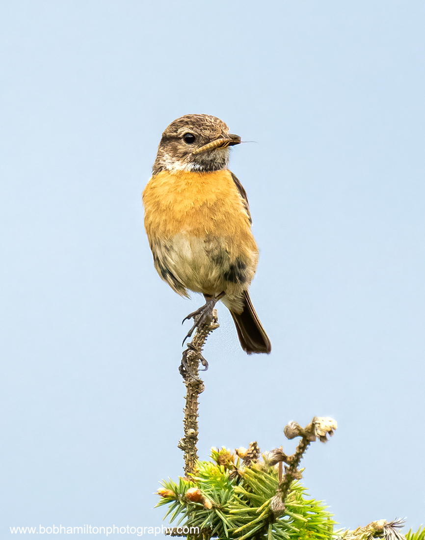 Female Stonechat with Moth in beak