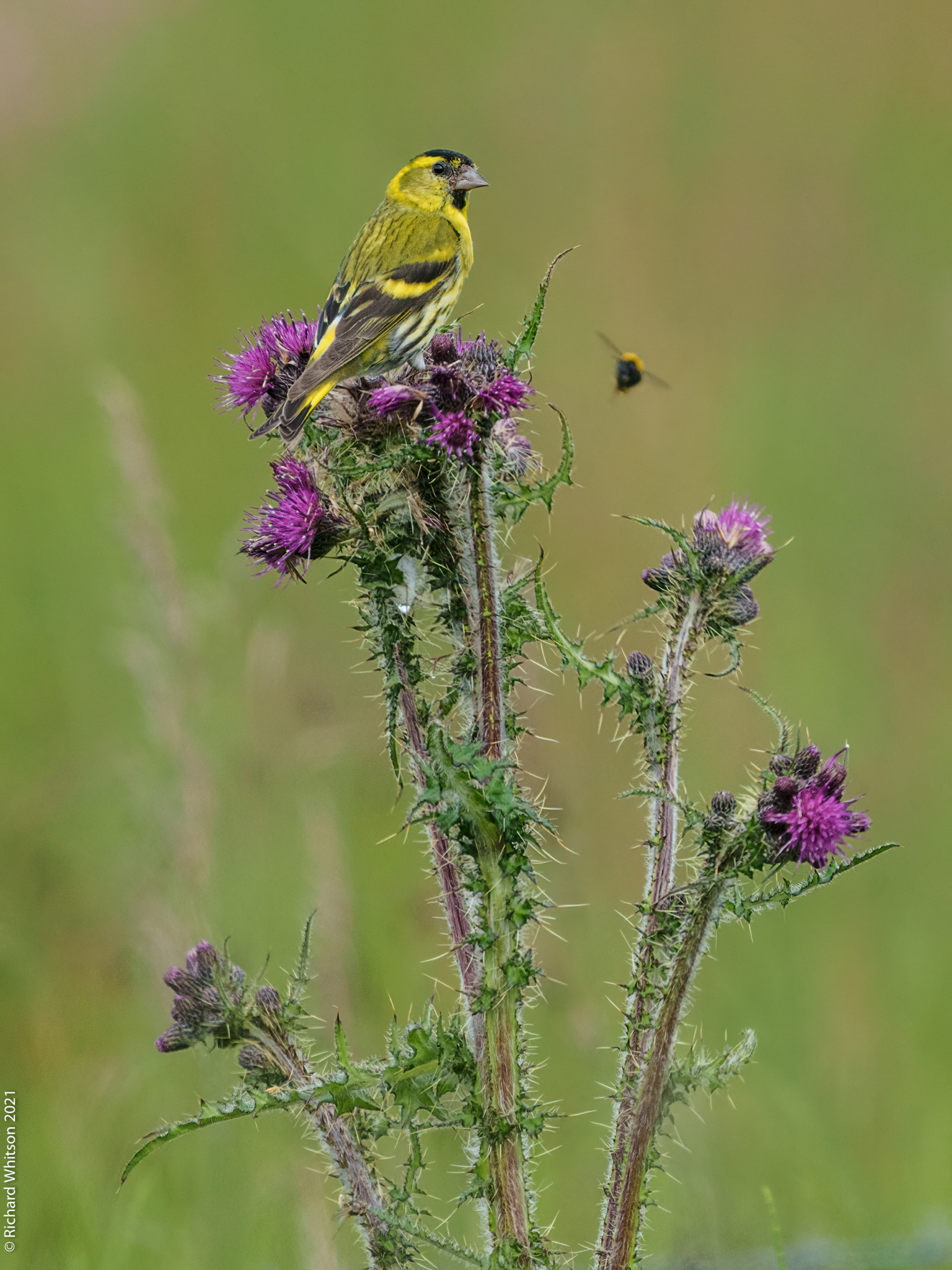 Siskin on Marsh Thistle
