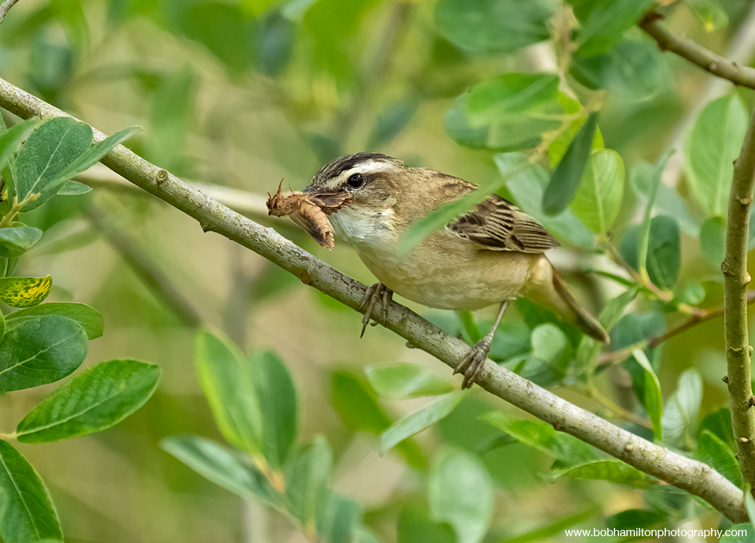 Sedge Warbler with Moth in beak