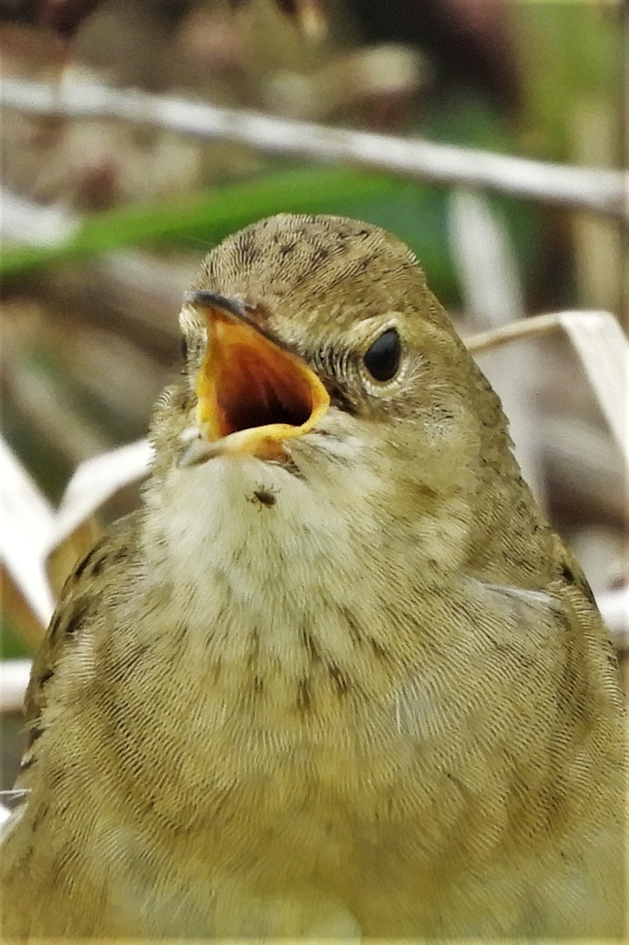 Common Reed Bunting female carrying food
