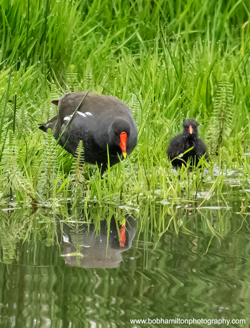 Moorhen Parent and Youngster