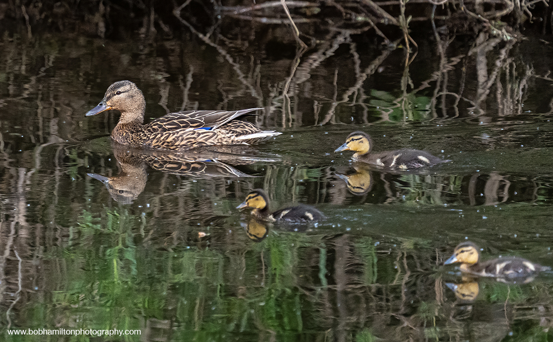 This wee family started out as 6 ducklings but has now, sadly, been reduced to 3, presumably as a result of predation by Mink, one of which I spotted in the same location only a few days earlier, Grey Heron or Mute Swan.