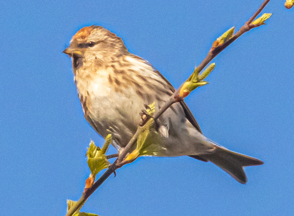 Lesser Redpoll among new foliage