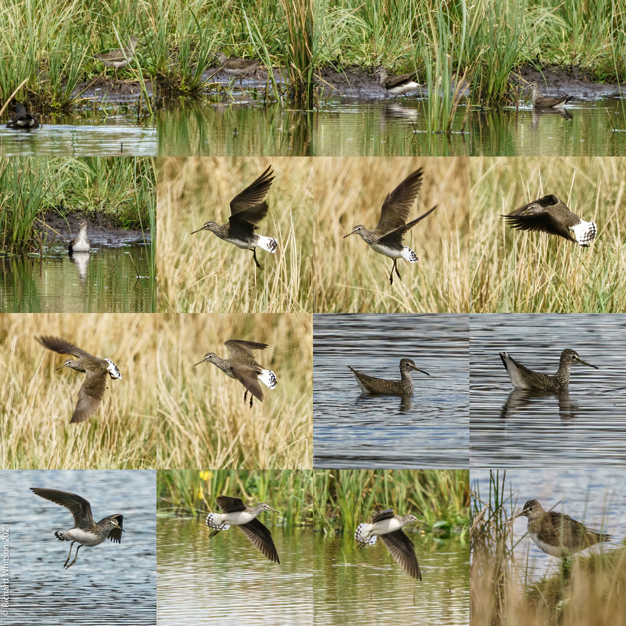 Green Sandpiper montage: Green Sandpiper, 01-05-2021, Richard Whitson, Cathkin Marsh SWT, Clyde