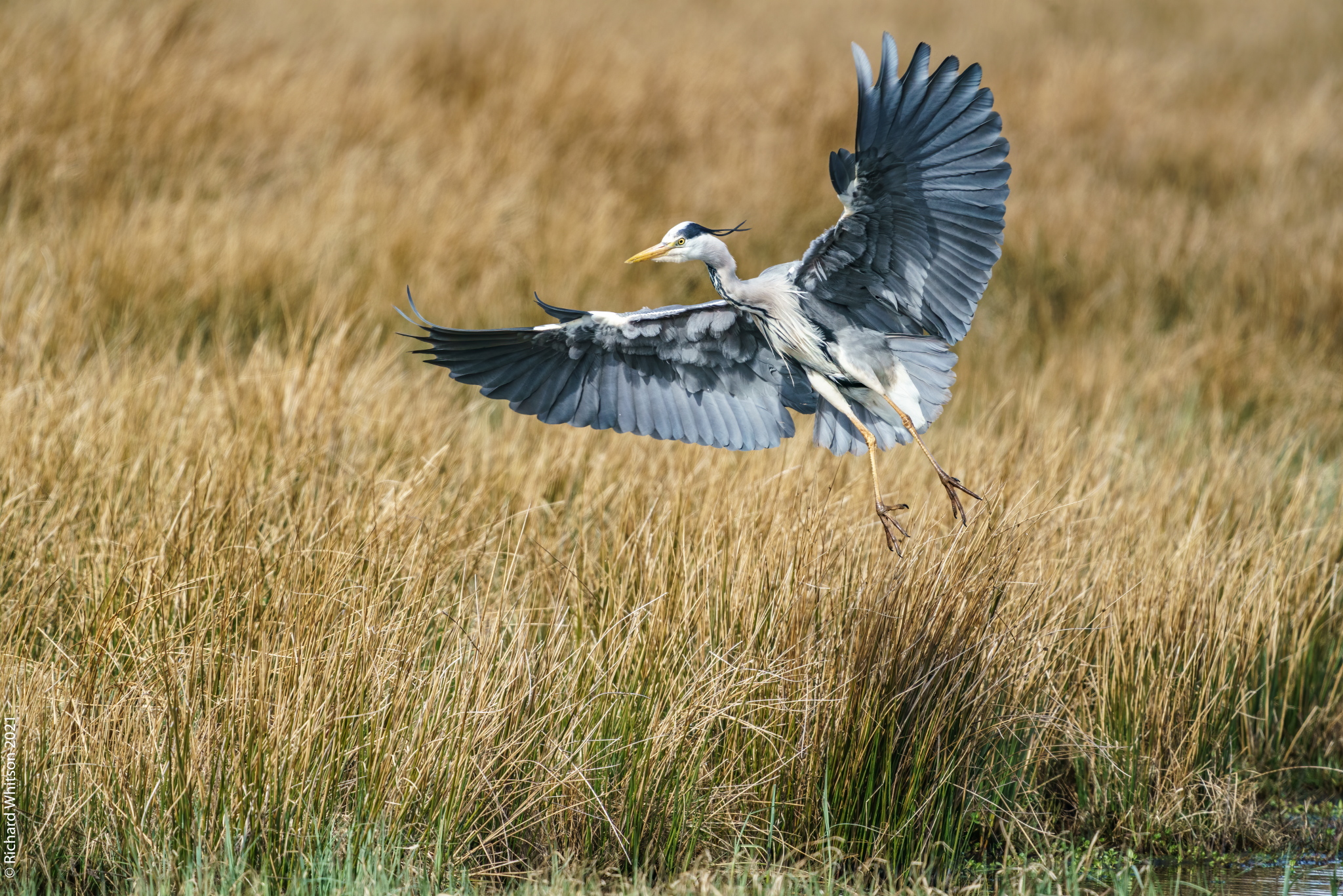 Grey Heron landing