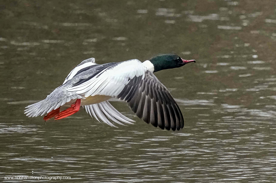Goosander Drake in flight