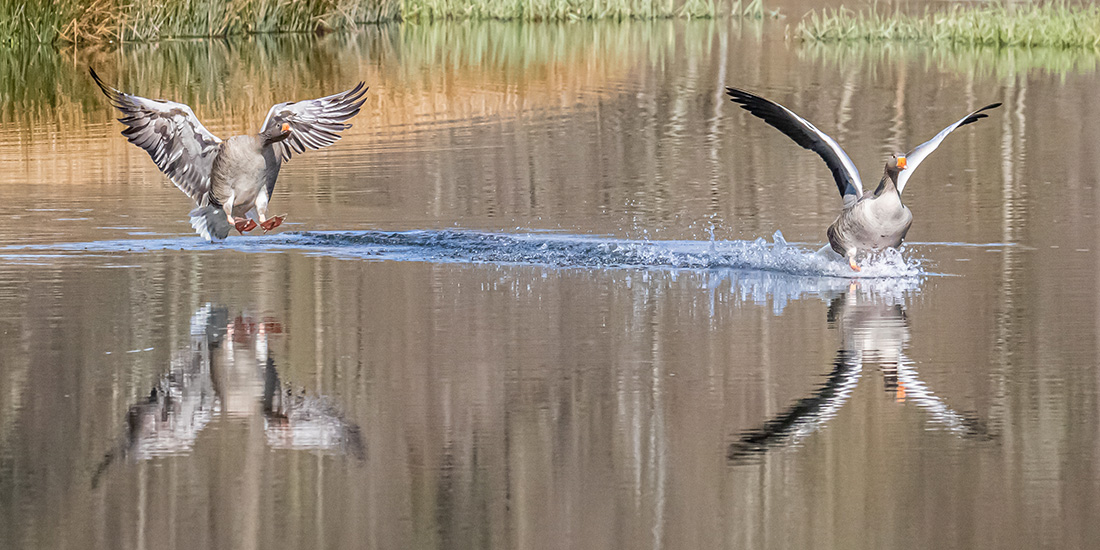 greylags landing together on the Blane ponds