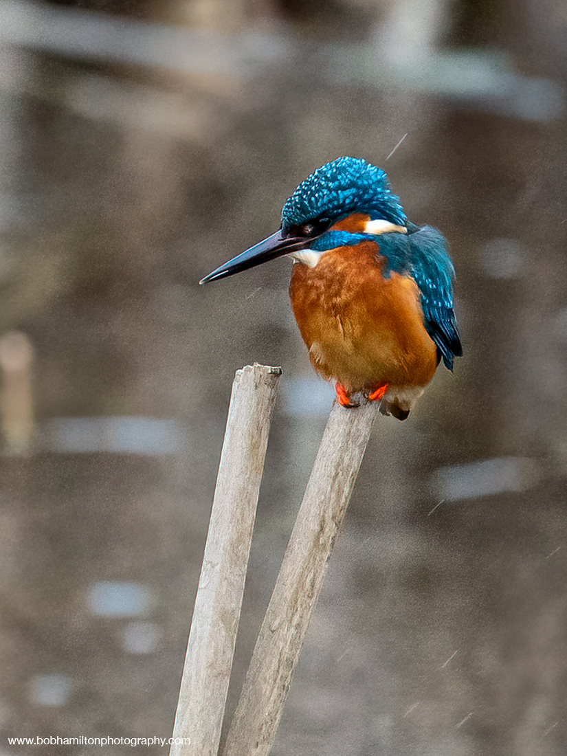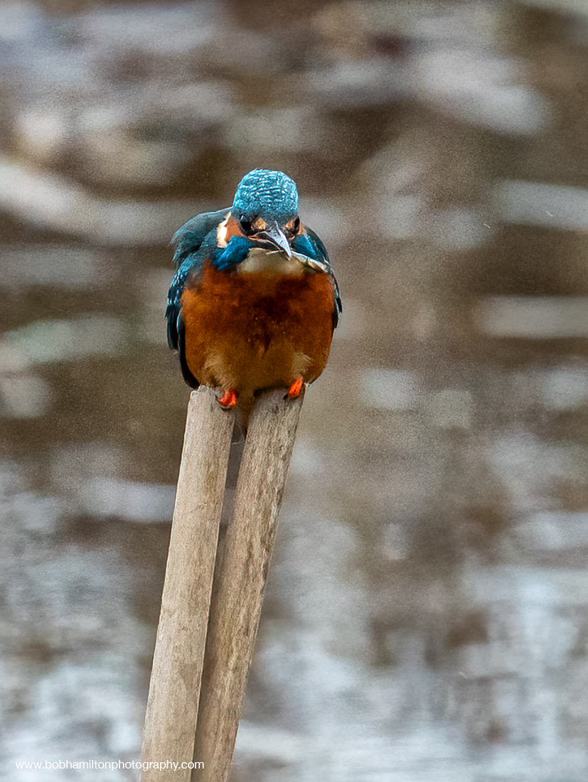 Male Kingfisher Perched on Reed