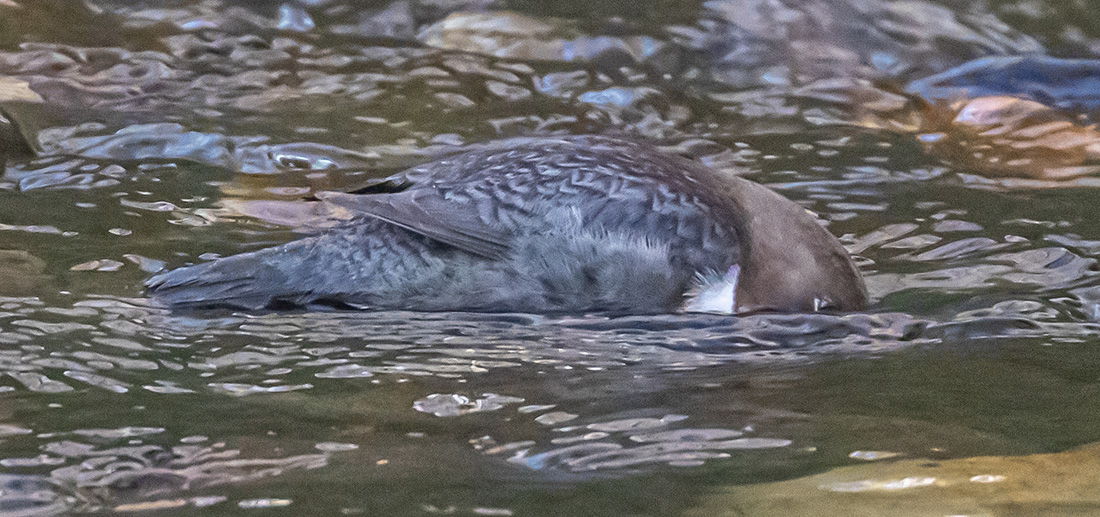 Dipper fishing with head partly submerged