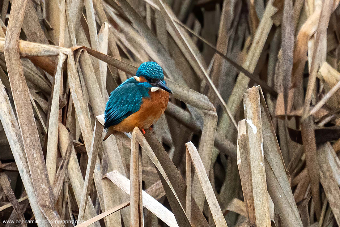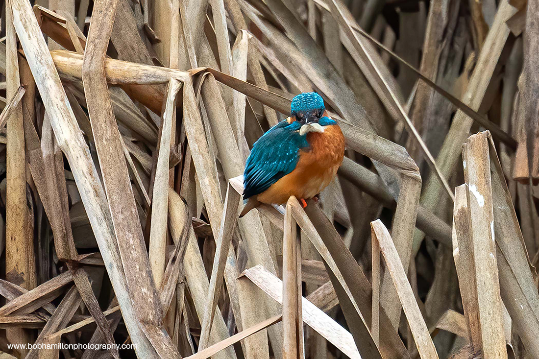 Male Kingfisher Perched on Reeds