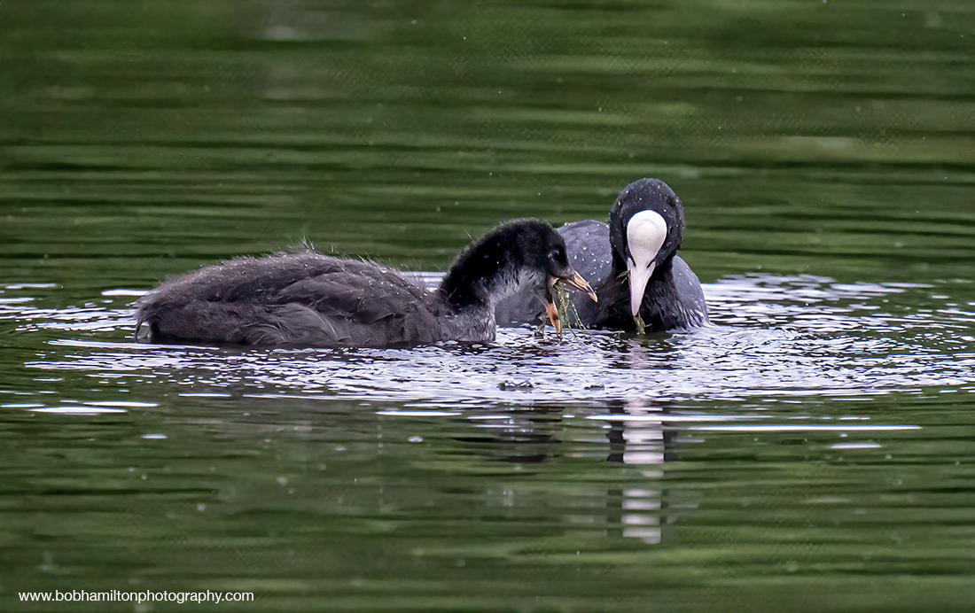 Coot Adult and Youngster Feeding