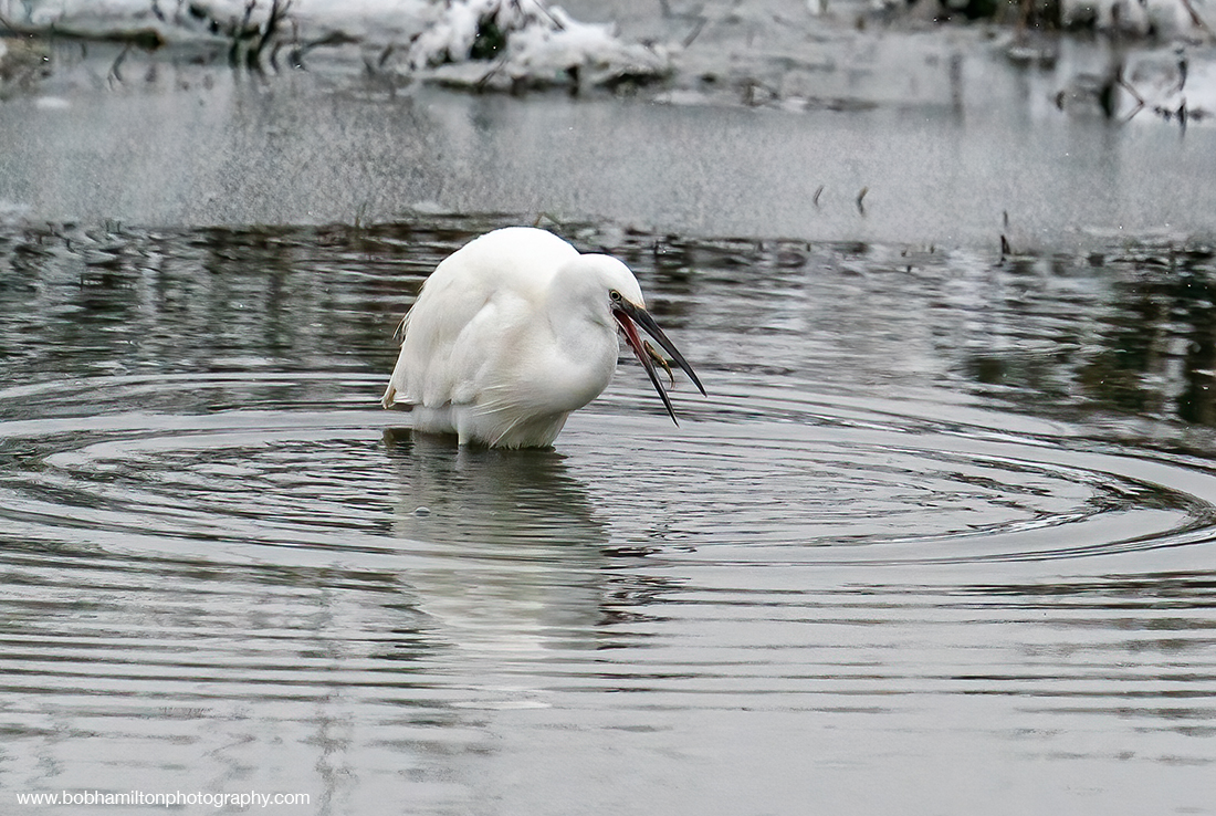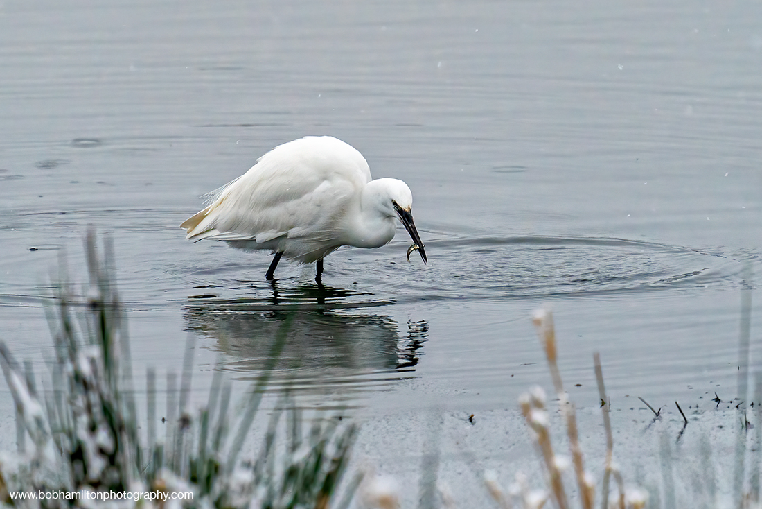 Little Egret Swallowing Stickleback Catch