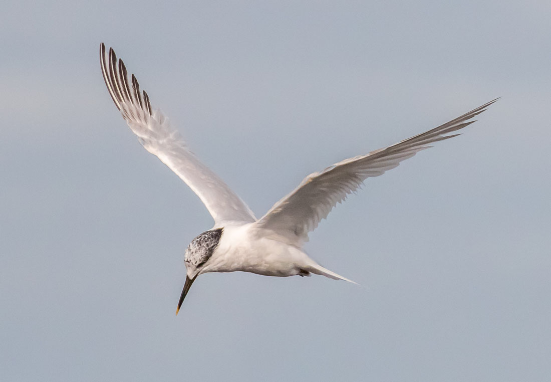A Sandwich Tern preparing to fish in the Cromarty Firth