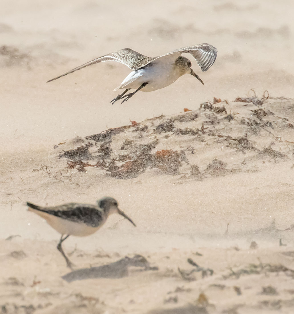 Curlew Sandpiper in windy conditions near Dornoch Point