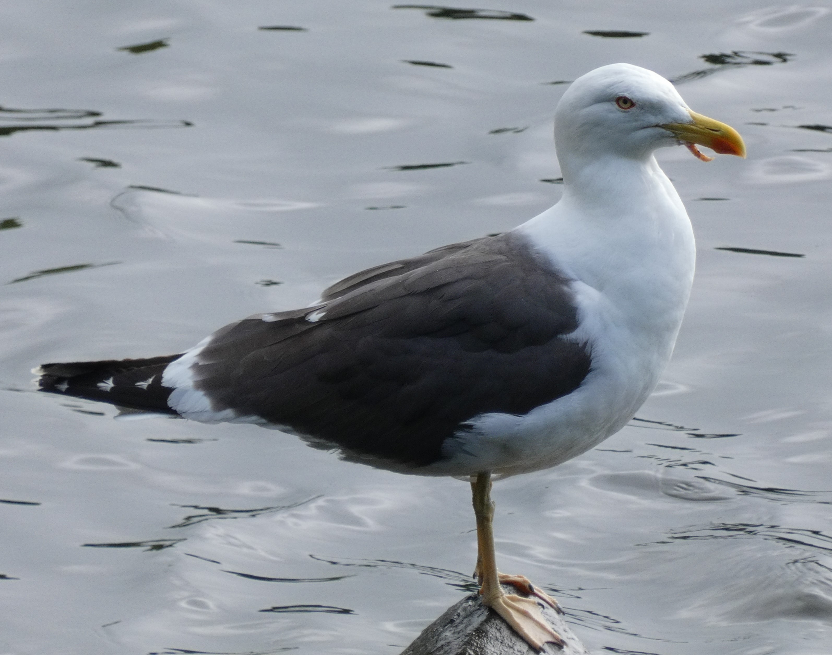 Lesser black-backed Gull, with deformed bill, tongue growing out below