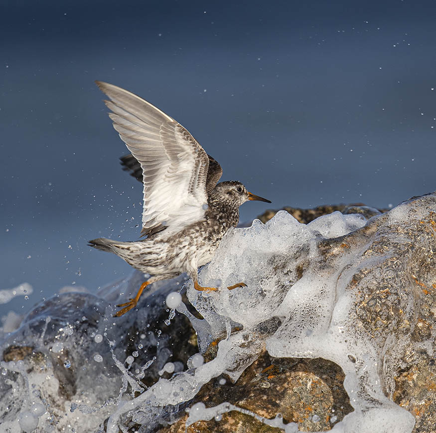 Purple Sandpiper washed off its rock