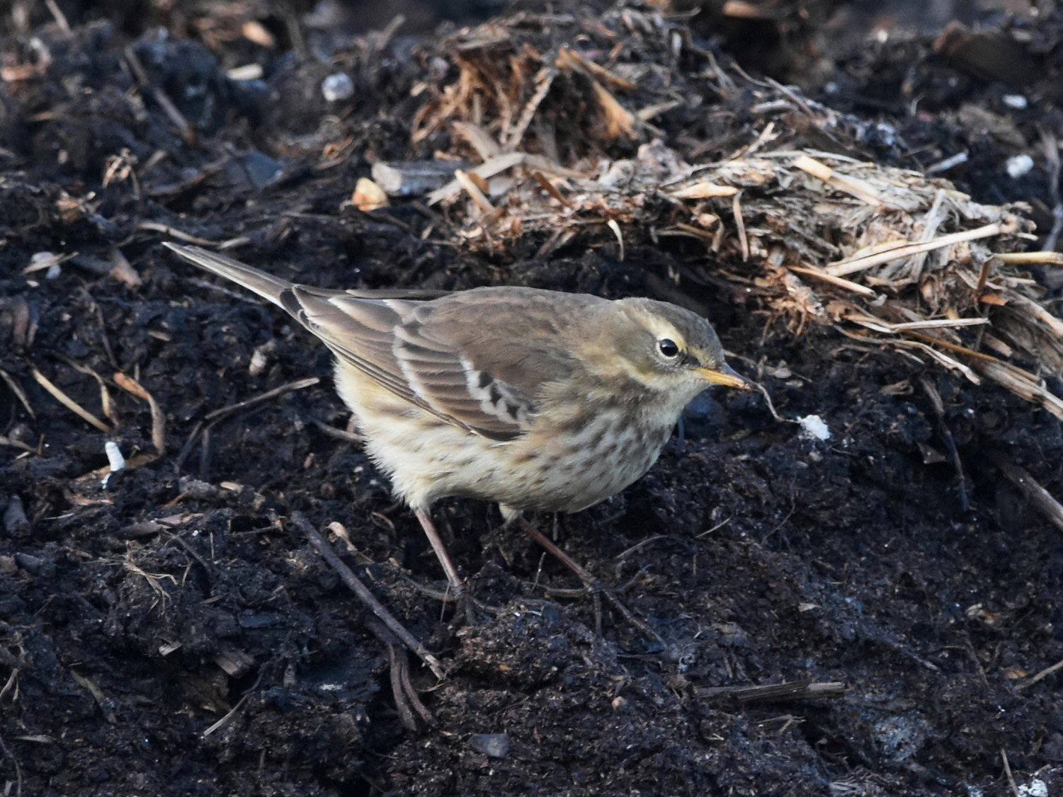 Water Pipit feeding on midden
