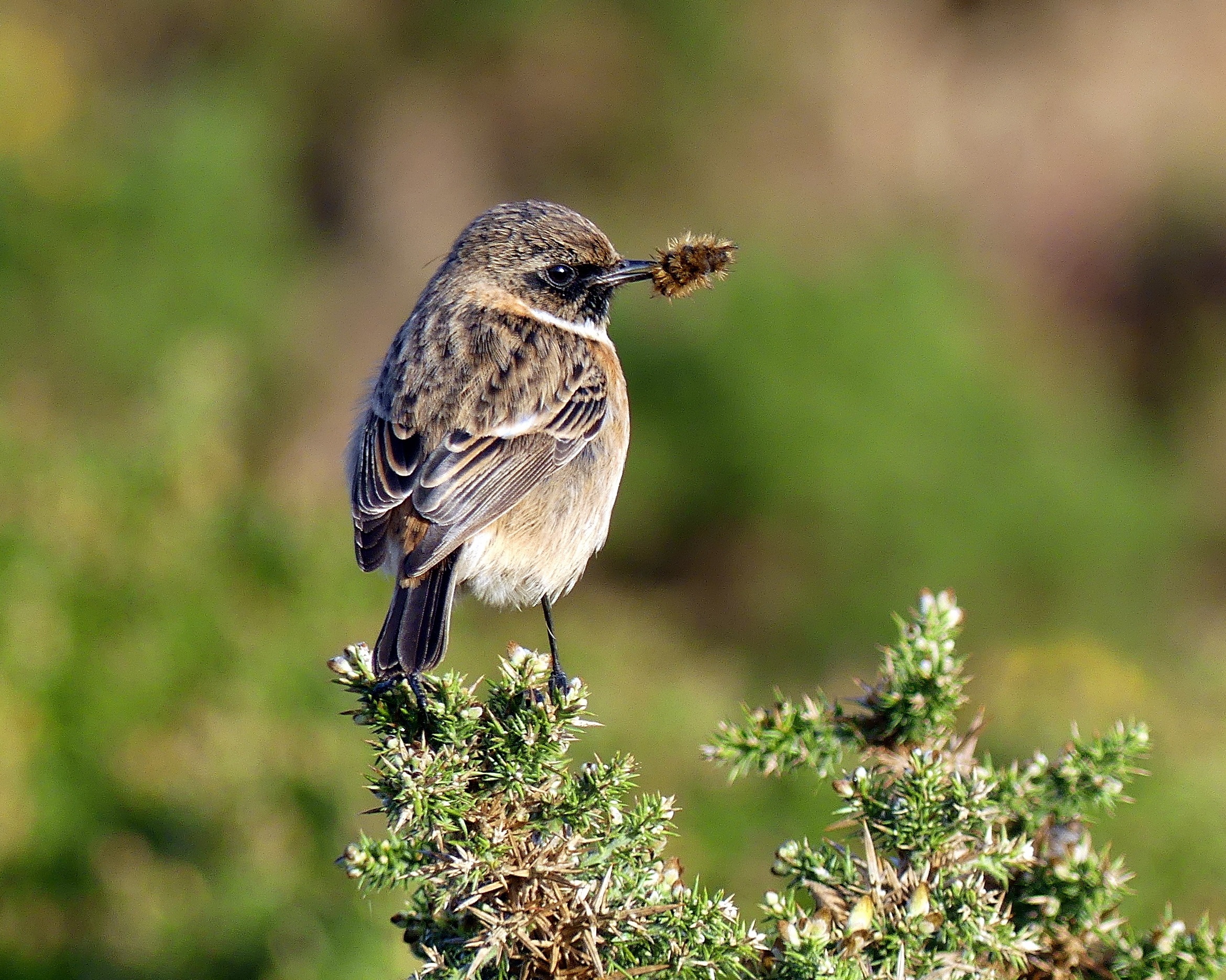 Stonechat with caterpillar