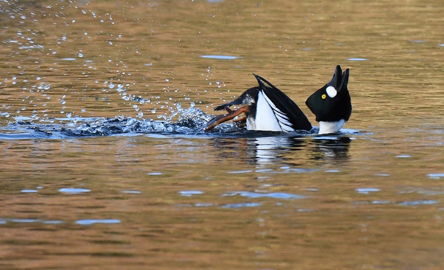 - A drake Goldeneye attempting to fold itself in half while displaying!