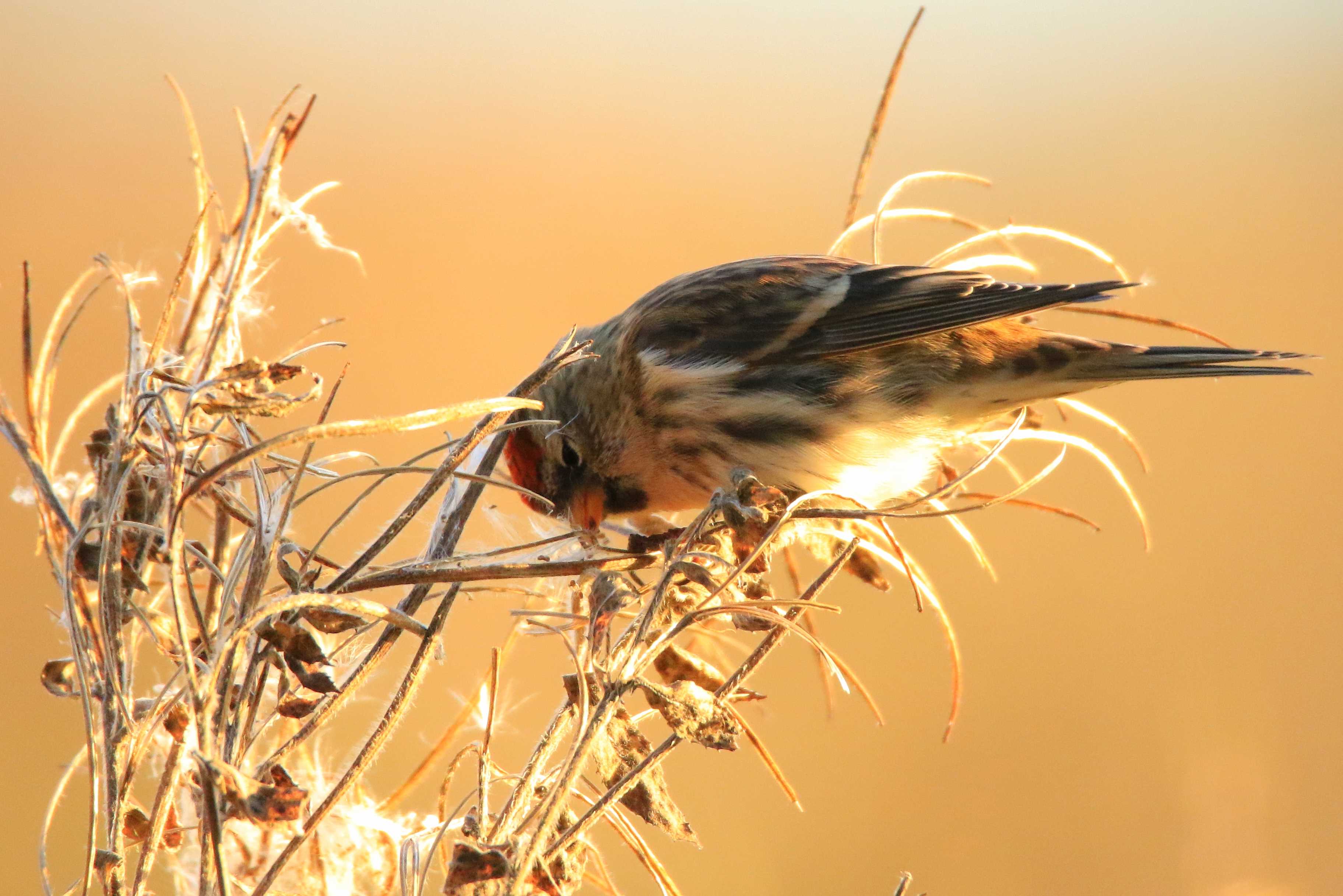 Lesser Redpoll feeding on weed seeds
