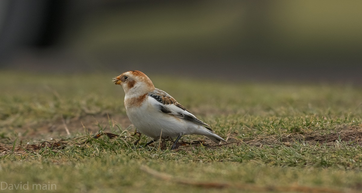 Snowbunting eating grass seed