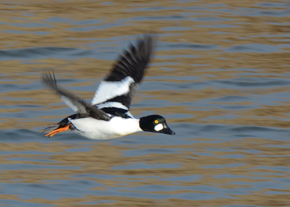 - Ayrshire. A drake Goldeneye flying up the Pow Burn on a clear winter morning.