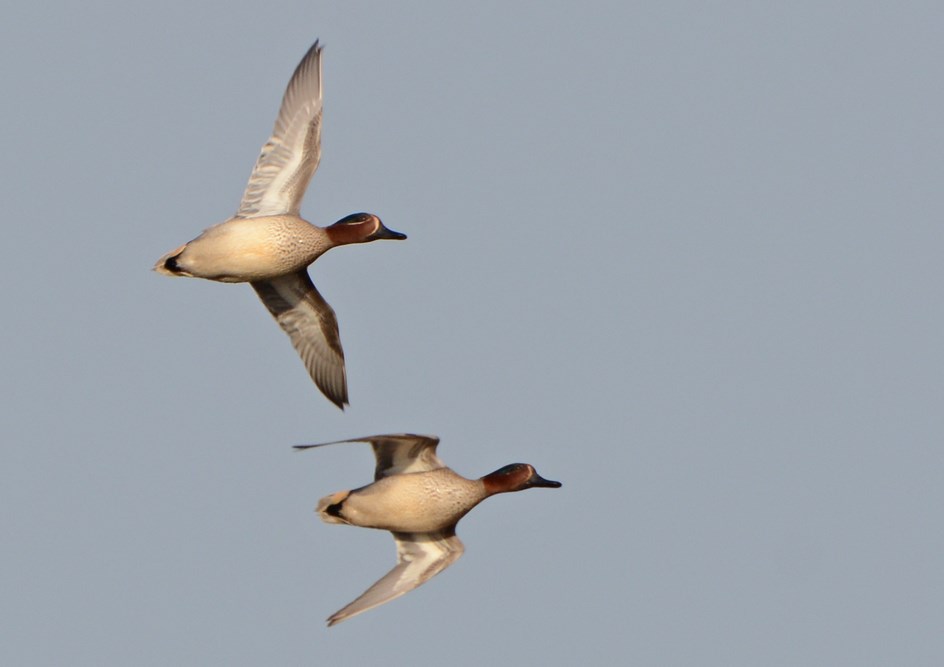 - Ayrshire. Two drake Teal at full tilt.