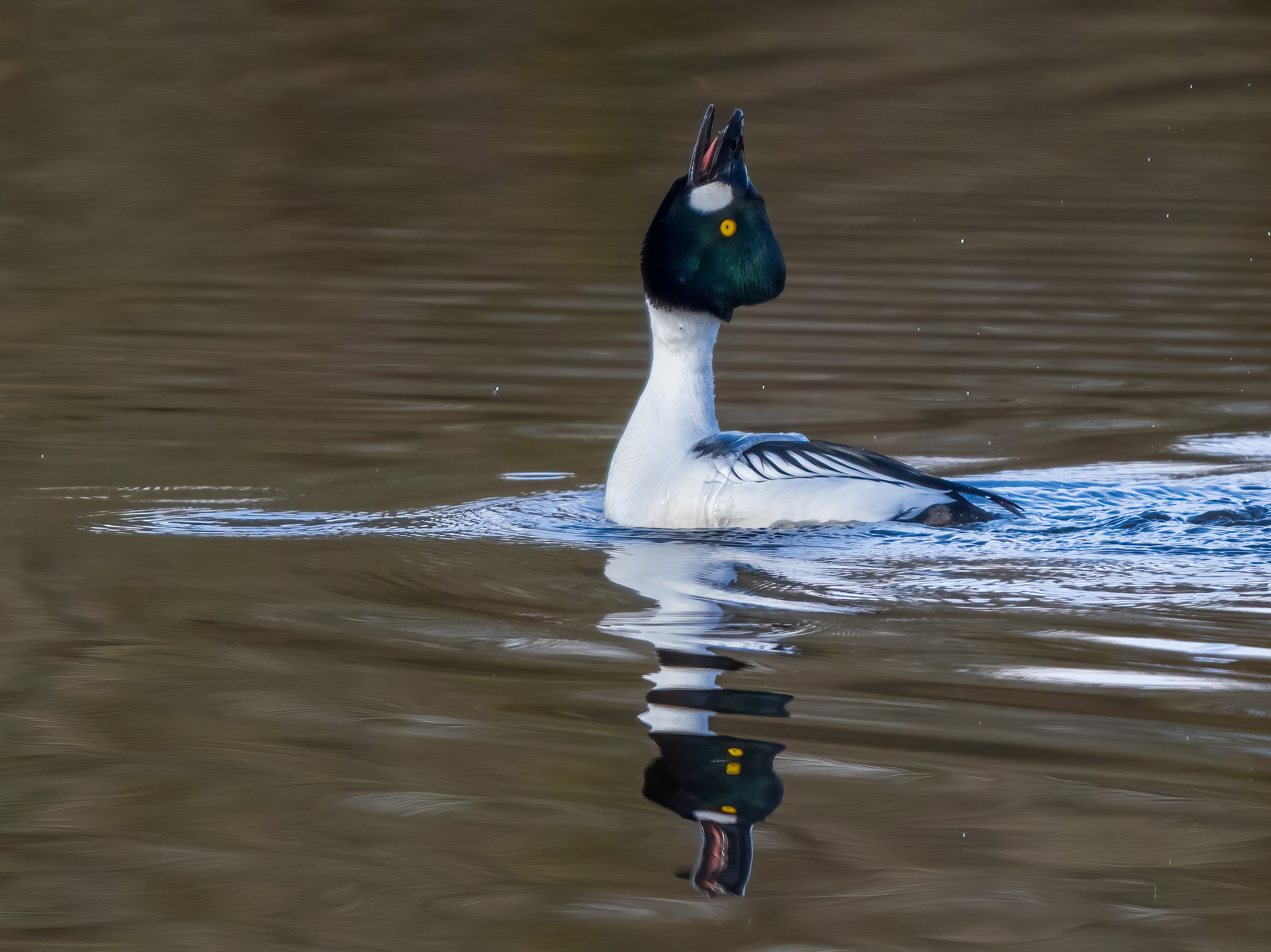 "Courting" - Male Goldeneye displaying to female
