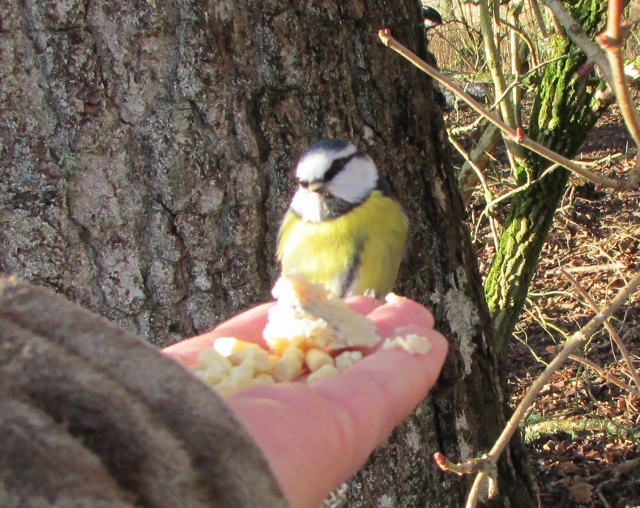 - Angus & Dundee. Blue Tit in for some feed so nice to have them coming back to feed from my hand proves they didn't forget about me.